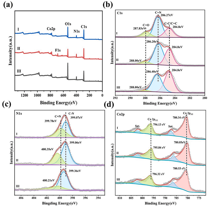 图7 rGO@ZIF-67@CS吸附TC(II)和NOR(II)前(I)和吸附后(II)的全光谱(a)、Cls(b)、N1s(c)和Co2p(d)的高分辨率XPS光谱