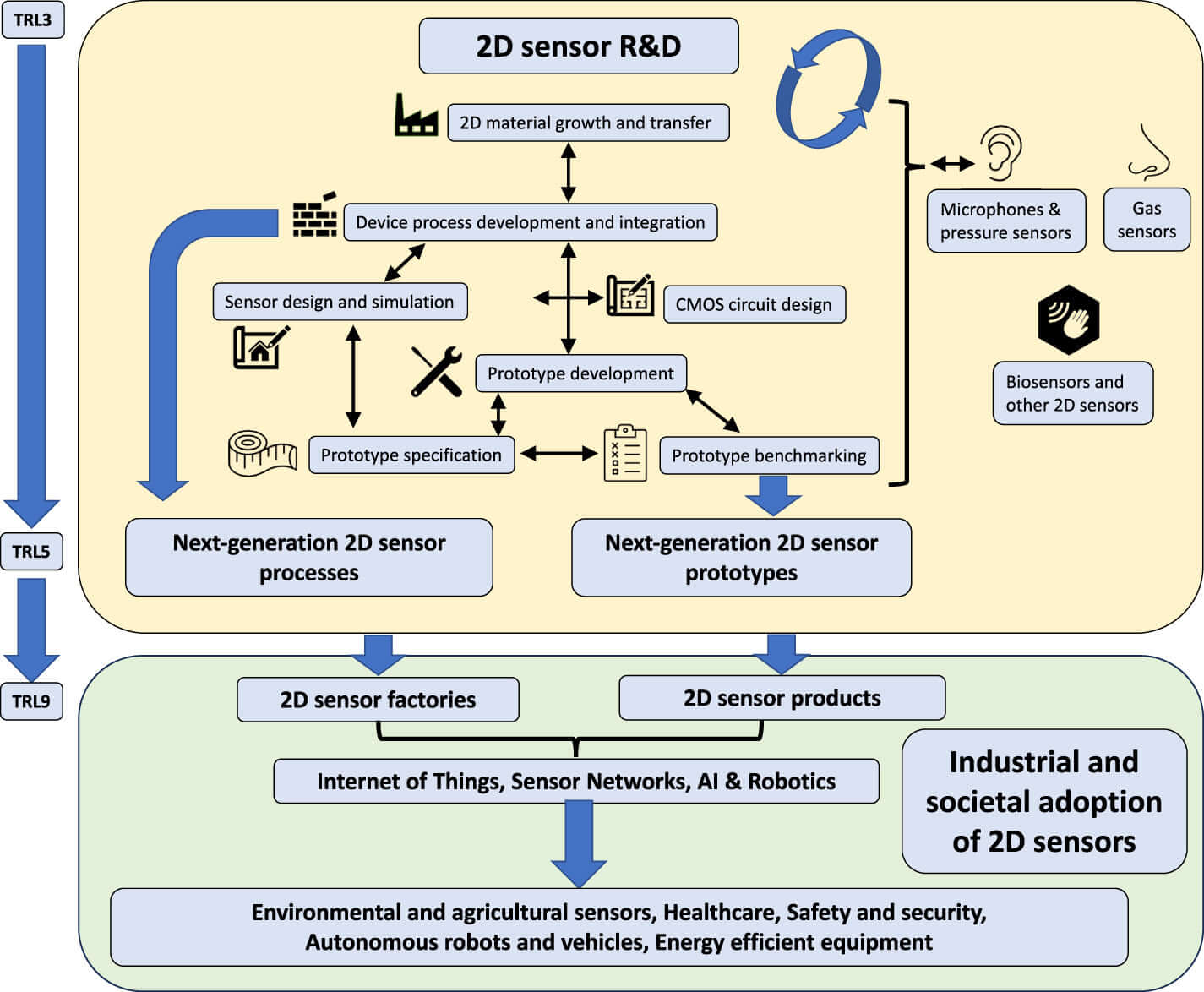弥合学术研究与工业产品开发之间的差距是一项重大挑战。公司倾向于将风险降到最低,只有在大学或初创公司展示出强大的传感器性能后,才会对二维传感器技术进行大量投资。一旦缩小了这一差距,二维传感器就能在智能设备中广泛应用,从而加快其普及速度。